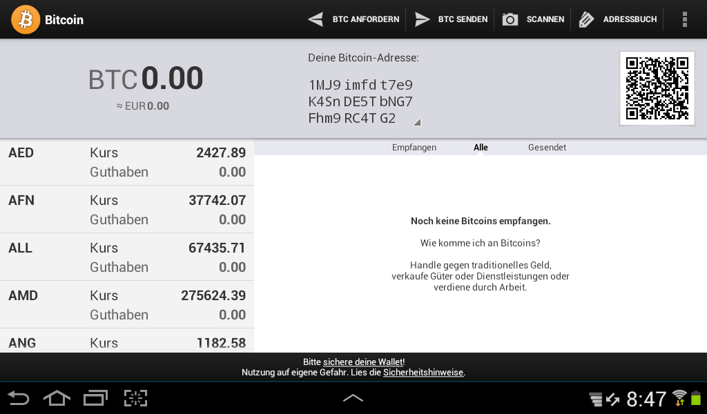 Bitcoin Wallet für Android von Andreas Schildbach